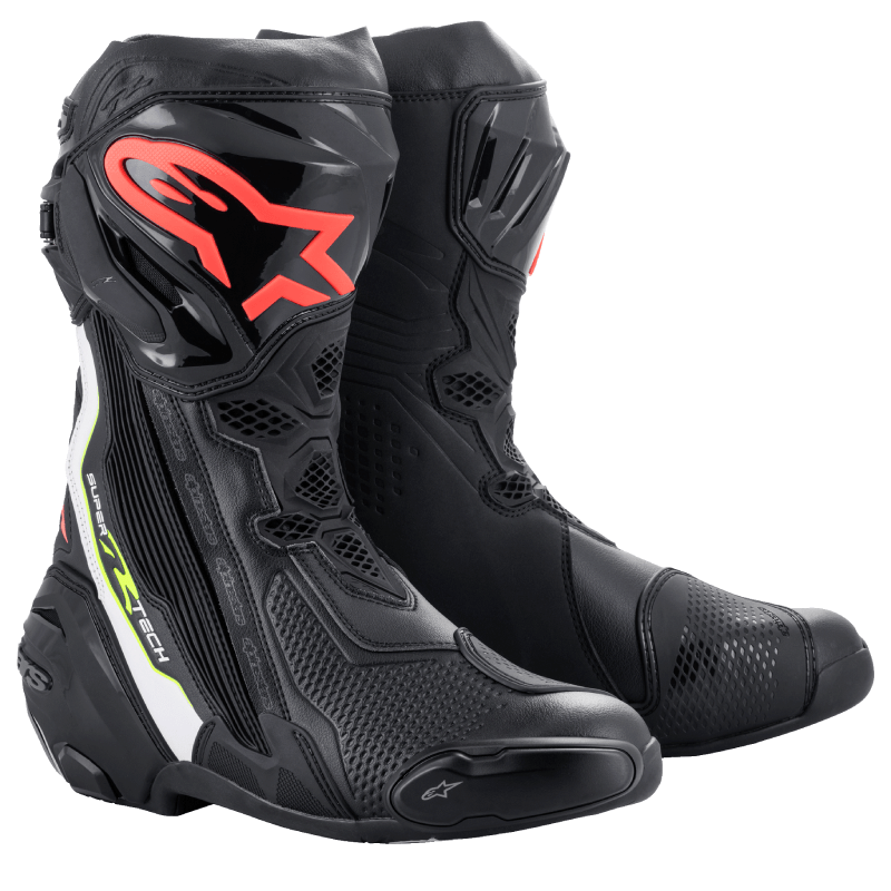 Almost every component of the Supertech R Boot, Alpinestars definitive racing boot as worn by a roster of champions past and present, has undergone a rigorous program of upgrades to sharpen its performance features even further. Featuring innovations derived using feedback from Alpinestars involvement in top flight racing, key elements include a newly redesigned front flex area, a redesigned rear bellow, a redesigned top gaitor, a new shifter and shin plate, a new shin slider and a new inner bootie, all of which enhance the comfort, protection and the performance of this boot to a new class-leading high.