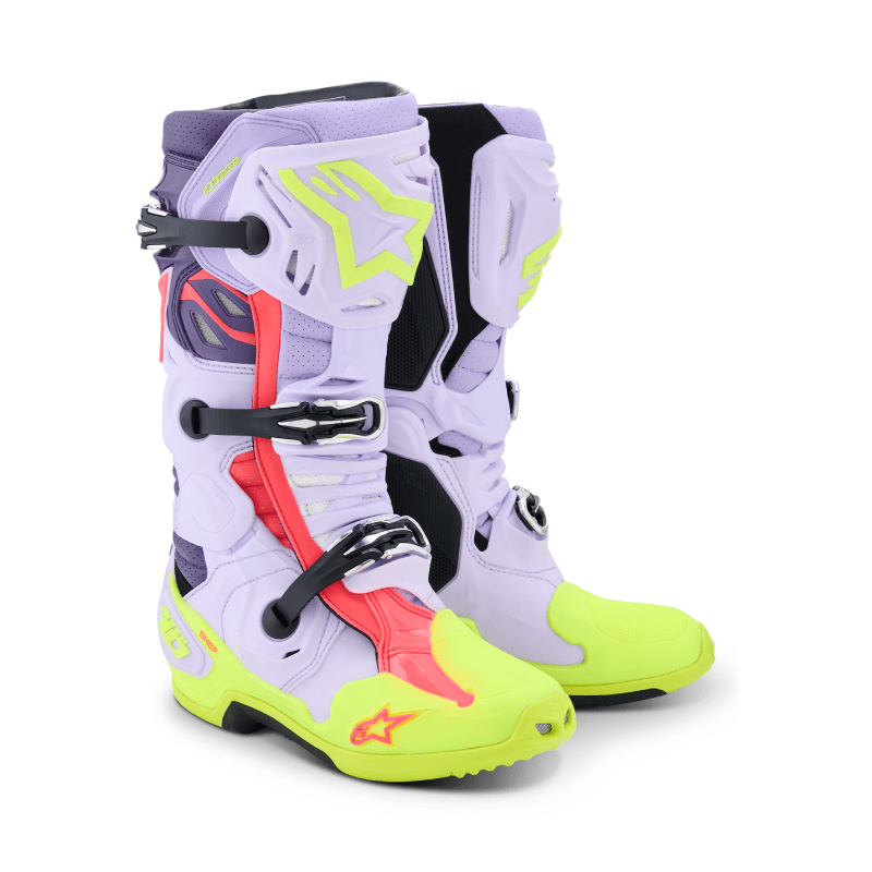The benchmark boot in Motocross, the Tech 10 Supervented boot further advances the innovations that make it the most technical motocross boot ever. Featuring two inlet ports on the front, a ventilated shinplate, perforated padding and extensive mesh sections, the Tech 10 Supervented has been designed for maximum airflow through the boot’s front and effective heat exchange. The new mesh inner bootie boasts a 3D Higher Spring insole which uses air channels within the sole for optimal levels of ventilation, while also creating a cushioning effect for enhanced levels of comfort. There is also a new sole with an extended honeycomb design for superior grip and feel on the bike’s pegs, especially in wet and muddy conditions.