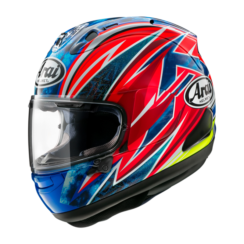 Perhaps the most fabled name in the entire Arai lineup, the Corsair has long been renowned as one of the most advanced, highest quality helmets available anywhere in the world. It represents the culmination of our vast experience in helmet design and unwavering focus on rider protection. And with features like the ingenious VAS shield mechanism, dramatically improved airflow and ventilation, and an odor resistant liner, the Corsair-X has certainly earned its place as our flagship model.