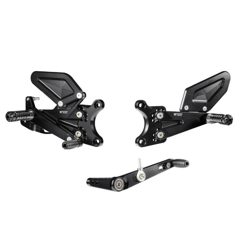 Bonamici Racing rearsets are made in Italy and are designed to give you optimal control of your shifting, braking, and overall body position. Accurately adjust your foot peg position for both comfort and control.