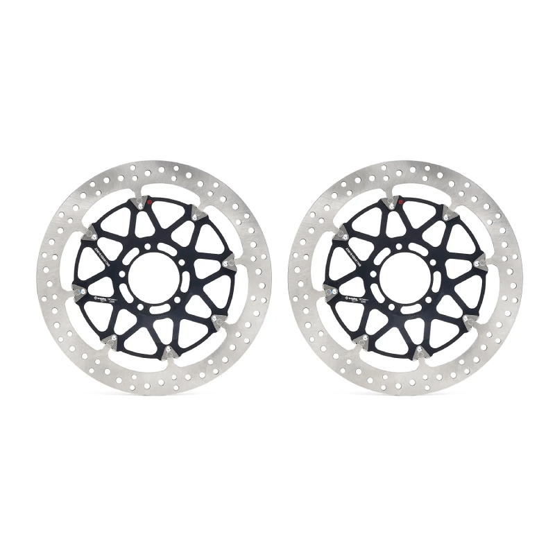 The T-drive disc, born from the experience gained in the top racing categories, is the latest evolution of Brembo racing discs. The special “T”-shape of the pins is the innovative element that strongly differentiates the T-drive from discs with drive pawls. This unique conformation transmits more braking torque, ensuring better resistance to thermal-mechanical stress, especially under extreme conditions of use, such as racing.
