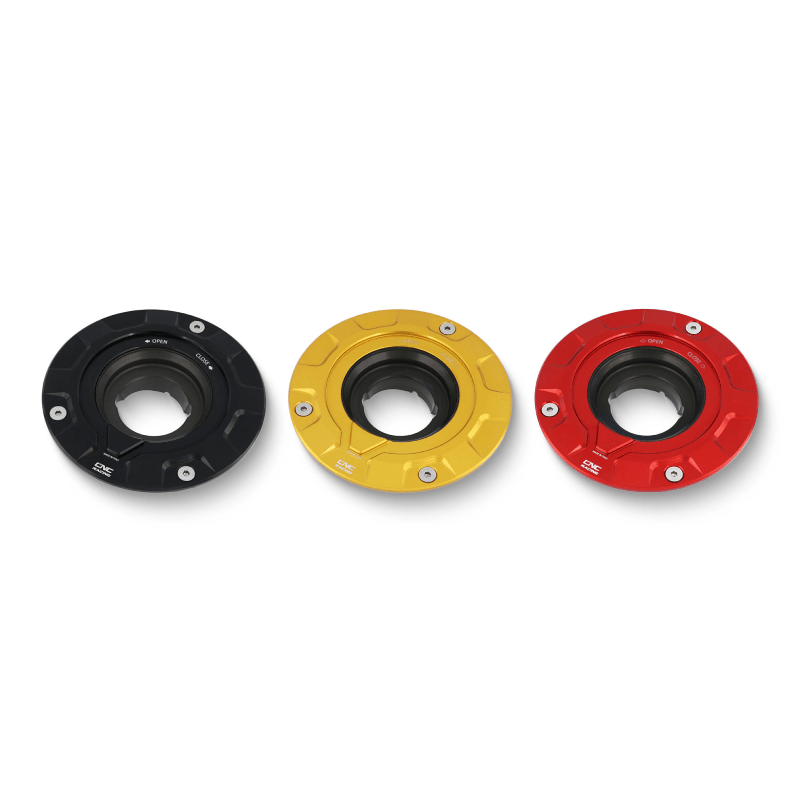 Fuel tank cap flange CNC made in light alloy, machined from solid and then anodized.