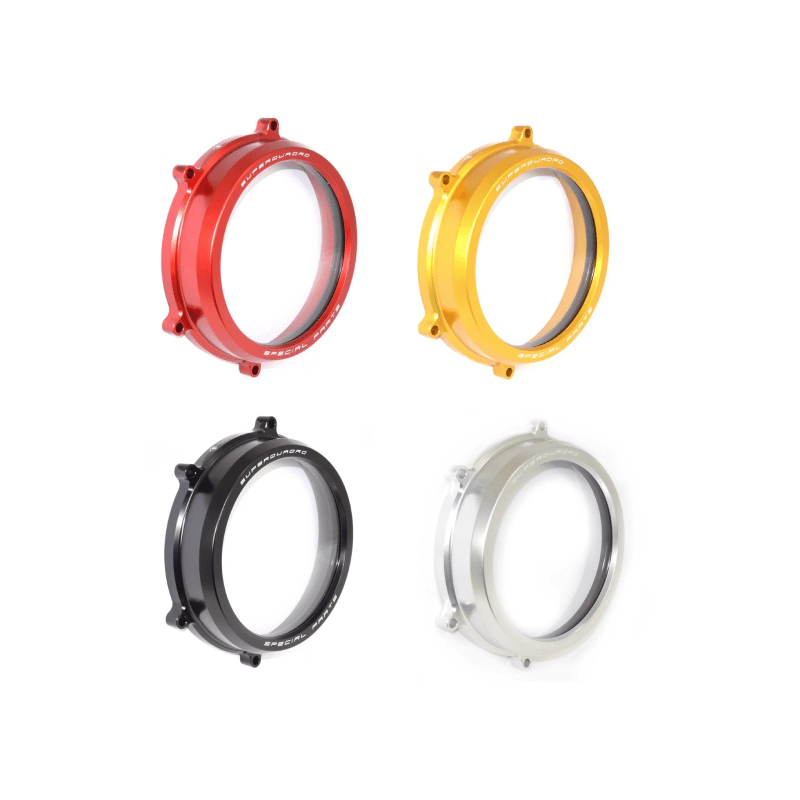 Clutch cover is CNC anodized aluminum billet, the plastic cover in specially treated to resist heat and pressure.