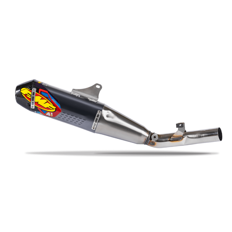 The Factory 4.1 RCT incorporates the latest in FMF Resonance Chamber Technology™ both internally and externally. In addition, we achieve a shorter overall length that is less susceptible to crash damage and complementary to our Factory Forward Engineering – moving the muffler closer to the motor to centralize mass. The Factory 4.1 RCT is constructed from only aerospace grade materials that meet our exacting specifications and is manufactured 100% at our Southern California factory.