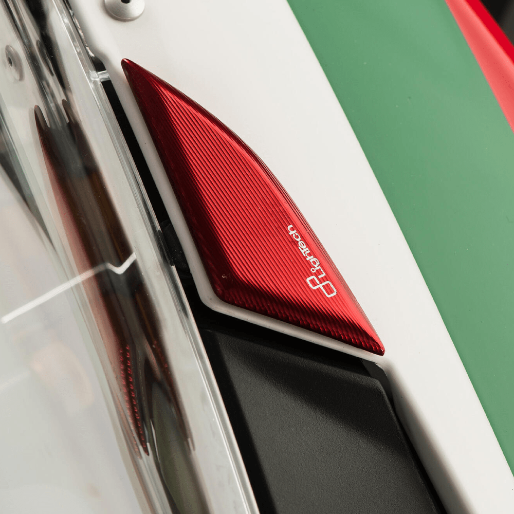 The LighTech mirror block-off plates perfectly cover the holes of the original mirrors when they are removed, in a very elegant and harmonious way. They are produced in an aluminum alloy, which combines long-term resistance with the lightness sought by pilots when riding. They are also ideal for use on the track without mirrors. To make the product more authentic and original, the LighTech logo is laser engraved on each mirror cap. The shape of each mirror cap changes to better adapt to the design of the motorcycle. The screws for installing the product are included in the package.