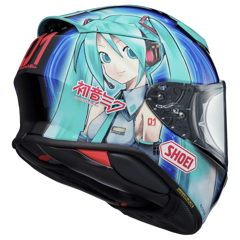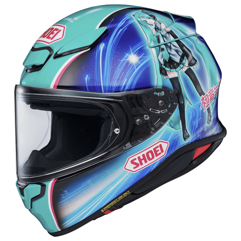 The SHOEI RF-1400 Hatsune Miku is not just a helmet – it’s a tribute to the world of virtual pop stars. Featuring a one-of-a-kind graphic inspired by Hatsune Miku, this helmet is a perfect blend of performance, protection, and style. With SHOEI’s advanced Multi-Ply Matrix AIM+ shell, this helmet delivers superior strength and lightweight performance, while the dual-layer multi-density EPS liner ensures exceptional impact absorption. The advanced ventilation system and 3D Max-Dry Interior System keep you cool and comfortable, even during long rides. The CWR-F2 shield provides a crystal-clear view, with Pinlock® anti-fog insert for those unpredictable weather conditions. Whether you’re a Hatsune Miku fan or just looking for top-tier protection, this helmet promises performance and a standout look on every ride.