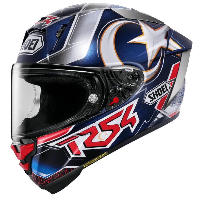The SHOEI X-Fifteen Toprak is engineered for racing speeds, aggressive body positioning, and the demands of elite-level competition. Designed with a highly aerodynamic shell profile, the helmet minimizes lift and drag while remaining stable through hard braking zones, rapid transitions, and full tuck positions. SHOEI’s AIM+ multi-fiber construction delivers exceptional impact protection while keeping weight low for precise control and reduced fatigue on track. Inside, a multi-density EPS liner with improved air tunnels works alongside the cheek pad ventilation system to maintain consistent airflow during intense sessions. The independently adjustable center pad system allows racers to fine-tune fit for a secure, locked-in feel. A CWR-F2R racing shield with a double shield lock stays firmly in place at speed, while Pinlock(R) compatibility helps preserve clear vision under pressure. Finished with E.Q.R.S. and hydration system compatibility, the X-Fifteen Toprak is built for riders chasing podiums.