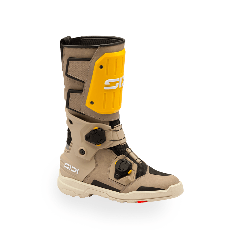 SIDI Taurus is a premium adventure touring boot inspired by SIDI’s original motocross line. Lightweight and compact, it offers solid support and flexibility for long rides and off-road exploration. The NUUN OO1M dial system gives quick, one-hand fit control, while the Materiis sole provides top grip and comfort. Built for protection, performance, and the freedom to ride beyond the map.