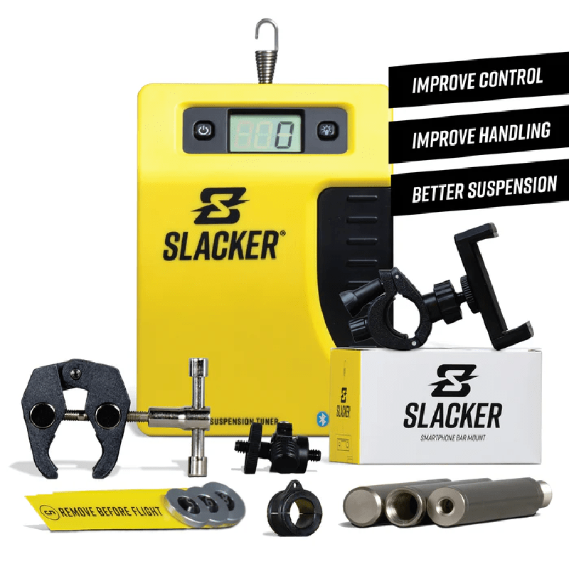 Slacker is a patented system that allows anyone to easily setup their suspension with no assistance. This easy-to-use system quickly mounts to motorcycles and mountain bikes and provides simple, fast, and precise measurements.